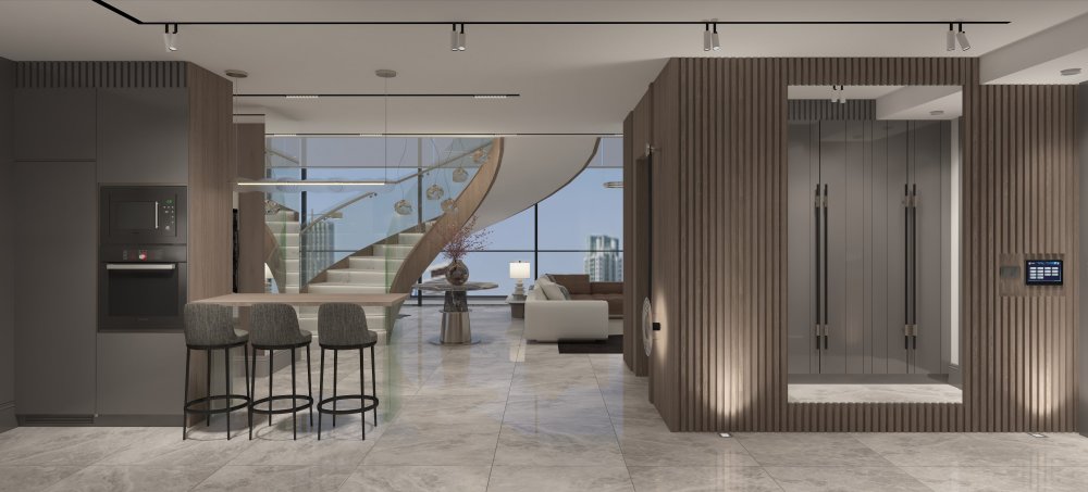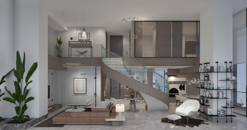Proje alanı ve genel mimariyi göz önüne alarak tasarladığımız bu loft dairede ağırlıklı olarak iç bölme oluşturmaksızın ana strüktürleri silik bir hale getirip genel mekan vurgusunu ön plana çıkartmak istedik.