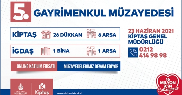 KİPTAŞ, tarafından düzenlenen halka açık 5. Gayrimenkul Müzayedesi, 23 Haziran Çarşamba günü saat 11.00’de KİPTAŞ Genel Müdürlüğü Konferans Salonu’nda başlayacak. 2019 yılının Ekim ve Aralık aylarında, 2020 yılının ise Mart ve Ekim aylarında toplam dört kez halka açık müzayede gerçekleştiren KİPTAŞ, “5. Gayrimenkul Müzayedesi” kapsamında bu kez kendi bünyesindeki 26 dükkan ve 6 arsanın yanı sıra İGDAŞ’a ait Merter Eski Hizmet Binası ve Ünalan İkmal Sahası Arsasını yatırımcılarla buluşturmayı amaçlıyor.