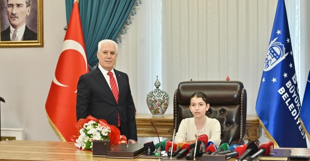 23 Nisan Ulusal Egemenlik ve Çocuk Bayramı’nda geleceğin ülke ve kent yöneticileri makamları sahiplerinden devraldı. Bursa Büyükşehir Belediye Başkanı Mustafa Bozbey de makamını Nurettin Gülten Kutlucan İlkokulu 4. Sınıf öğrencisi Zeyna Defne Kesmez’e devretti. Tarihi Belediye Binası’nda düzenlenen devir teslim törenine geleceğin başkanına okul müdürü Mehmet Salih Şahin, sınıf öğretmeni Ayşe Gül Yeşil, sınıf arkadaşları Şeymanur Öğüt ve Arda Adil Güler eşlik etti.