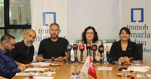Basın toplantısında konuşan Mimarlar Odası Bursa Şubesi Başkanı Şirin Rodoplu Şimşek, “Depremlerin ardından bugüne kadar afet risklerinin azaltılması, sağlam ve güvenli yaşam çevrelerinin oluşturulmasına yönelik yeterli önlem alınmamıştır. Tüm ülkede ve bölgede afet öncesi ve afet sonrası süreçleri doğrudan etkileyecek yasal düzenlemeler yapılırken; yaşanan yıkım ve kayıplara sebep olan planlama, kentleşme ve yapılaşma politikaları devam ettirilmektedir” dedi.