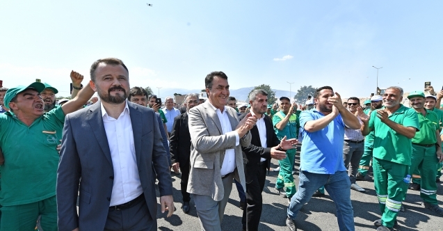 Başkan Dündar’ın zam oranını açıklamasıyla birlikte büyük bir coşku yaşayan belediye işçileri, “Osmangazi seninle gurur duyuyor” şeklinde tezahüratta bulundu.