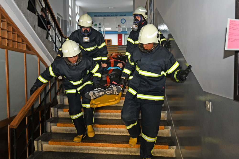 Osmangazi Belediyesi Afet İşleri Müdürlüğü ekipleri ile Tophane Mesleki ve Teknik Anadolu Lisesi İtfaiyecilik ve Yangın Güvenliği Bölümü öğrencileri, afetlere karşı farkındalığı artırmak amacıyla okul yerleşkesinde kapsamlı bir tatbikata imza attı. Gerçeğini aratmayan senaryolarla gerçekleştirilen uygulama, hem katılımcılara hem de izleyenlere nefes kesen anlar yaşattı.