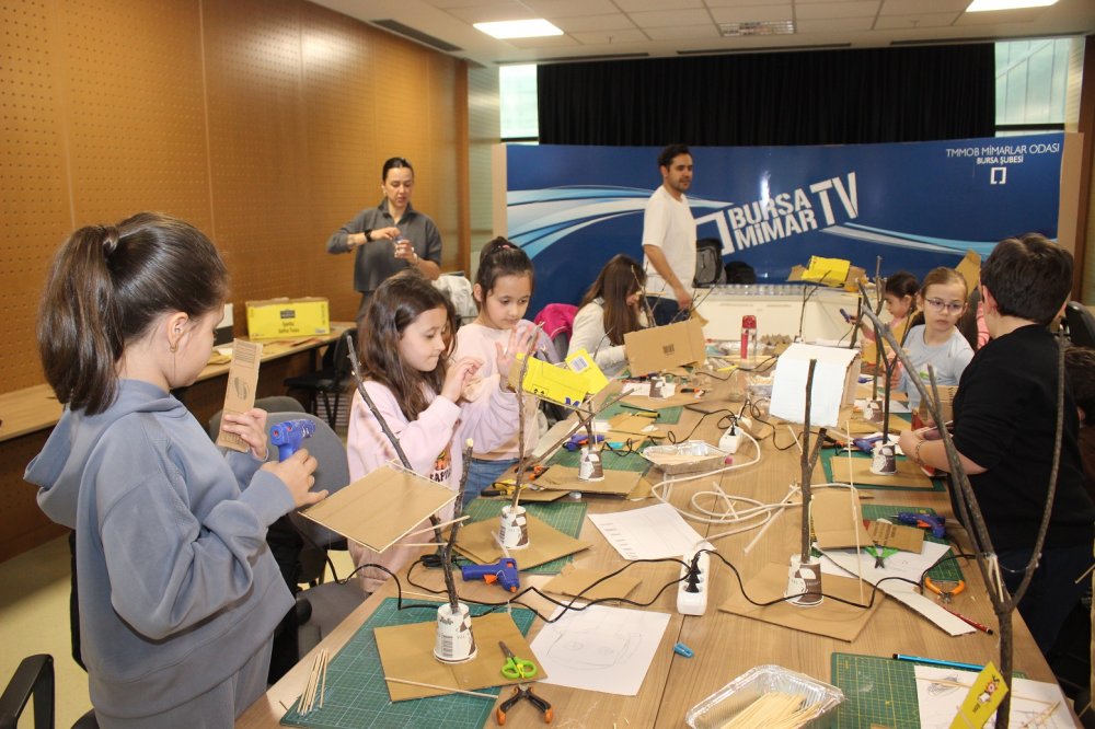 Mimarlar Odası Bursa Şubesi Yönetim Kurulu Sekreter Üyesi Aytül Küçüközdemir Aydın ise 23 Nisan’ın anlam ve önemine dikkat çekerek, “Geleceğimiz olan çocuklarımızın üretken bireyler olarak yetişmesi bizim için çok kıymetli. Bu tür etkinliklerle onların hem eğlenmesini hem de öğrenmesini hedefledik” şeklinde konuştu.