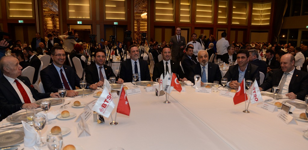 Konuşmaların ardından İMSİAD Başkanı Namık Ziya Mescioğlu, BTSO Yönetim Kurulu Başkanı İbrahim Burkay’a plaket takdim etti.