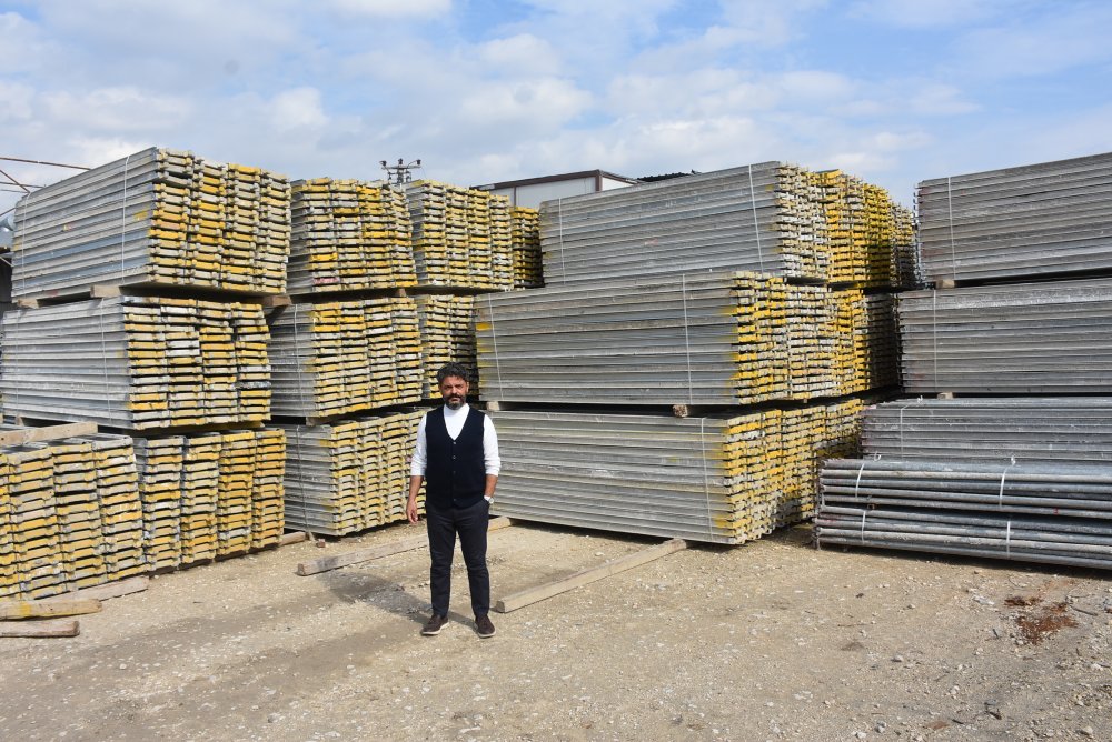 8 bin metrekarelik depoda, 150 kişilik ekibimizle, 300.000 metrekare iskele ve TSE sertifikalı ürünlerimizle hizmet veriyoruz. Daha çok kiralama üzerine hizmet veriyoruz. Sekiz bin metrekare bir depoda faaliyet gösteriyoruz şu anda. Sekiz dönüm alanda aşağı yukarı 150 tır civarında bir malzemeyi çeviriyoruz Bursa ve çevresine, Marmara ve Ege bölgelerine hizmet veriyoruz. Depomuzda 10 kişi çalışıyor, muhasebede bir kardeşimiz ve forklift şoförlerimiz var. İskelelerimizi kurup söken firmaların çalışanları ve nakliyecilerimizi de sayarsak yaklaşık 150 kişilik bir kadro ile hizmet veriyoruz.