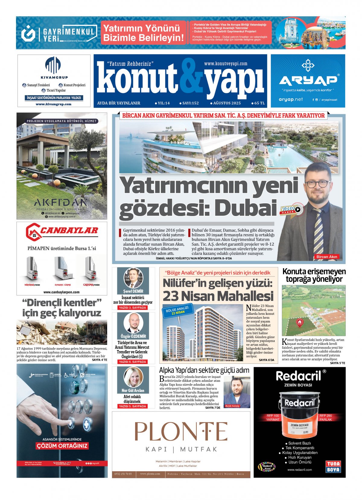 Temmuz ayında konut fiyatlarındaki düşüşün nedeni talep oluşmaması olarak değerlendirilmelidir. Ve sektördeki arkadaşlarımızın iş hayatlarını da sürdürmek zorunda oldukları için zaman zaman bu şekilde kendimize göre finansal çıkışlar yapabiliyoruz. Dolayısı ile genelde çoğumuz önümüzdeki sorunları aşmak adına fiyatlarımızı geri çektik. Bazen maliyetine bazen de maliyet altına satışlar yapıldı. Şöyle stoktaki konut ya da bağlantıdaki malzemeler de maliyet rakamında değişkenlik yapabilir. Bu fiyat düşüşleri ülke genelindeki gibi Bursamız içinde konut satışlarının artmasına olumlu olarak yansıdığını gördük. Yaklaşık bir senedir tıkanma noktasına gelen bir süreçten geçiyoruz. Bilindiği üzere inşaat sektörümüz ekonomi için dinamo etkisi yaratan çok önemli bir meslektir. Yaklaşık 270 sektöre hitap ettiğimiz unutulmamalıdır. İnşaat sektörü bunun için ihmal edilmemelidir. Sektörümüzde ilave vergiler de geldi. Vergi artışları çözümden ziyade sorunlar üretmektedir. Aslında mevcut vergi oranlarının tahsilatını yapmak üzere bir yol çizilseydi ve de piyasa tedarik zincirleri denetlense daha akışkan sonuçlar alınabileceğini düşünüyorum.