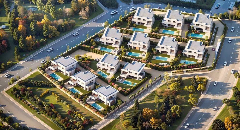 Projede siteye giriş ve çıkış imkanı sağlanmakta, geniş ve ferah bahçe alanları bulunmakta. Her villaya ait özel havuz ve kullanım alanı olan bahçe mevcut. Ayrıca, her villada en az 4 araçlık otopark yer alıyor.