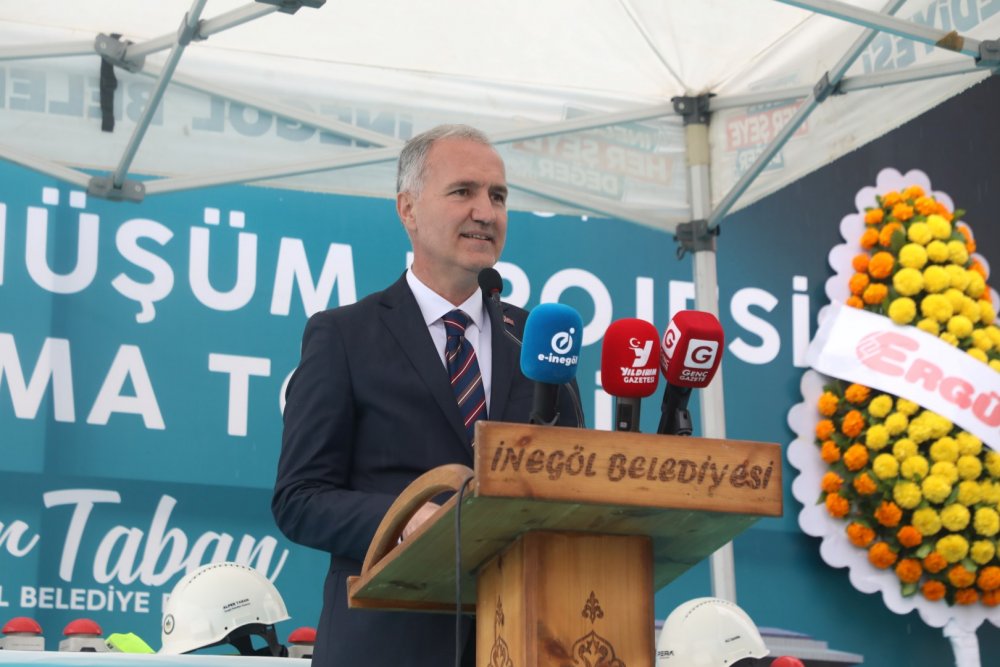 Temel atma töreninde kürsüye gelen İnegöl Belediye Başkanı Alper Taban ise şehrin kentsel dönüşüm serüveni ve temeli atılan projeye ilişkin bilgiler paylaştı. “Bugün şehrimiz için çok önemli bir gün” diyen Başkan Taban, şöyle konuştu: “Çok heyecanlıyız. Kentsel dönüşüm ülkemizin pek çok yerinde yapılıyor ama İnegöl adına bir ilk olacak. 153 dönümlük bir alanda dönüşümü gerçekleştireceğiz. Bir Belediye Başkanı için en kolayı nedir? Suya sabuna dokunmazsınız, herkes evlerinde yaşamaya devam eder. Kimsenin bir tepkisi, sitemi olmaz. Dolayısıyla kentsel dönüşüme de ihtiyaç olmaz. Ama biz AK Parti olarak, İnegöl Belediyesi olarak böyle düşünmüyoruz. Sayın Cumhurbaşkanımızın bize verdiği talimatlar doğrultusunda şehirlerimizi daha dirençli kılmak için canla başla çalışıyoruz. Bu çalışmaların ön hazırlığını geçen dönem tamamladık. Bursa bölgesinde Kentsel Dönüşüm Strateji Belgesini Bakanlığa ilk sunan belediye olduk."